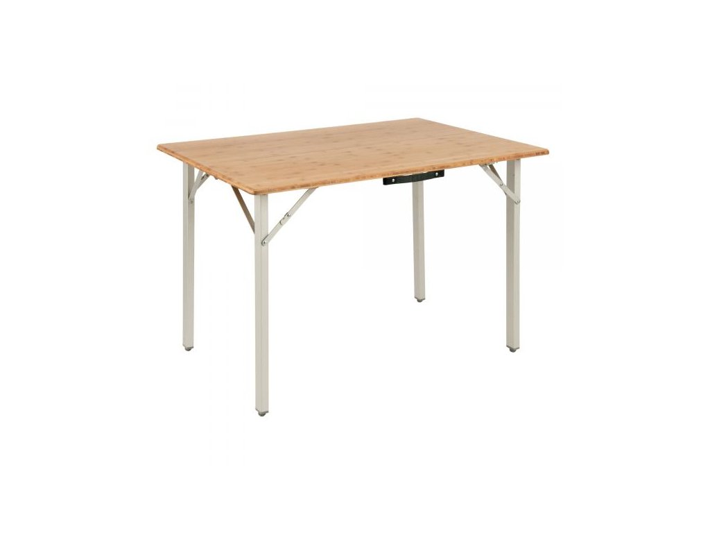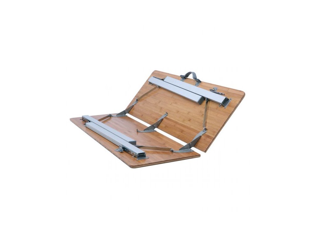 Stylový stůl s moderním designem. Vyrobeno z odolných materiálů, má odolnou bambusovou desku stolu a hliníkový rám. Montáž a demontáž během několika sekund. Praktická madla umožňují snadnou přepravu. Malá velikost balení. Nastavitelné nožičky.