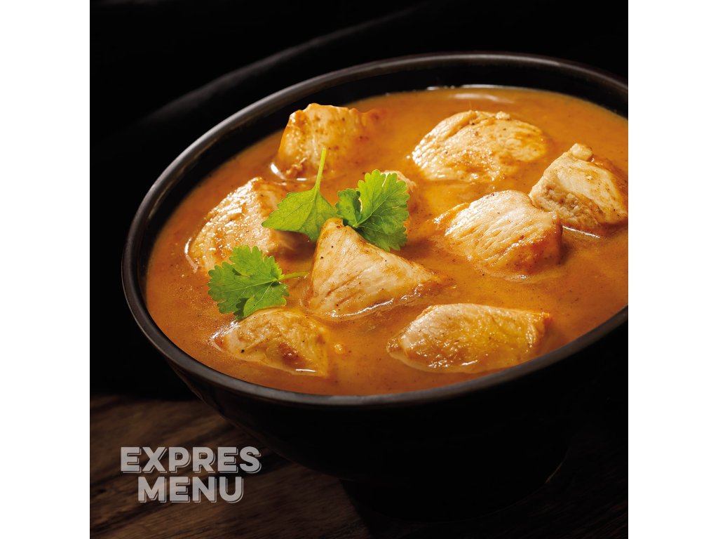 Jemná smetanová indická omáčka s kousky pečených kuřecích prsou, vychucená originálním kořením garam masala, zázvorem, kurkumou a koriandrem. Náš tip: skvěle chutná s basmati rýží