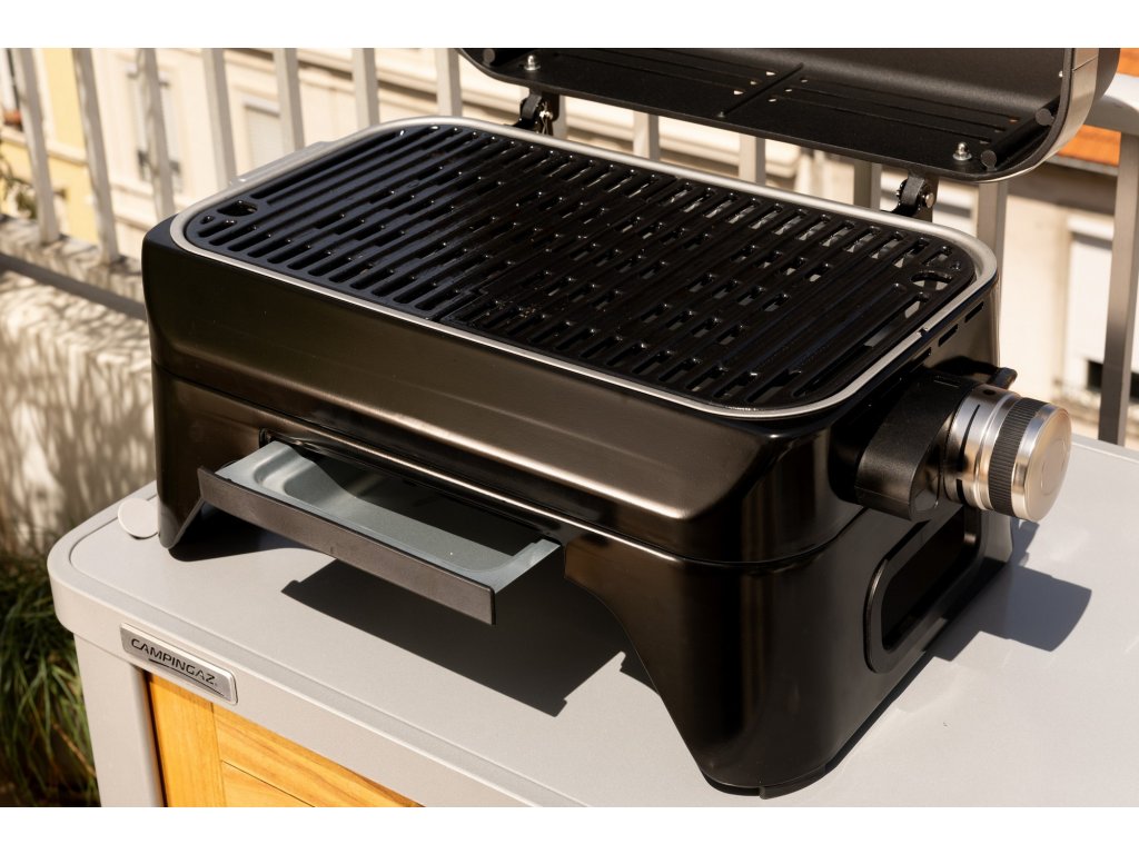 Elektrický gril vhodný pro vnitřní i venkovní grilování. S vysokým výkonem pro dosažení toho nejlepšího efektu z přípravy vašich grilovaných pokrmů. Odolný litinový grilovací rošt s integrovanou ochranou proti vzplanutí, která snižuje riziko zpětného vzplanutí tuků, které vznikají při grilování. Elegantní matně černé víko z tlakově litého hliníku udržuje teplo. Vynikající rovnoměrné rozložení tepla, umožněné elektrickým topným systémem Campingaz®. Předmontovaný stolní gril bez nutnosti použití šroubováku! Vyrobeno z pevných a odolných materiálů, tak aby vám gril sloužil dlouhá léta. Certifikováno pro vnitřní i venkovní použití. Pohodlné uložení kabelu. Přednastavená volba teploty pro snadné řízení tepla. I tento gril disponuje snadným systémem čistění InstaClean®: Gril jde jednoduše rozebrat na jednotlivé díly, které lze umýt v myčce nádobí a vyjmout lze i topné těleso – to vše zajišťuje rychlé a jednoduché čištění.