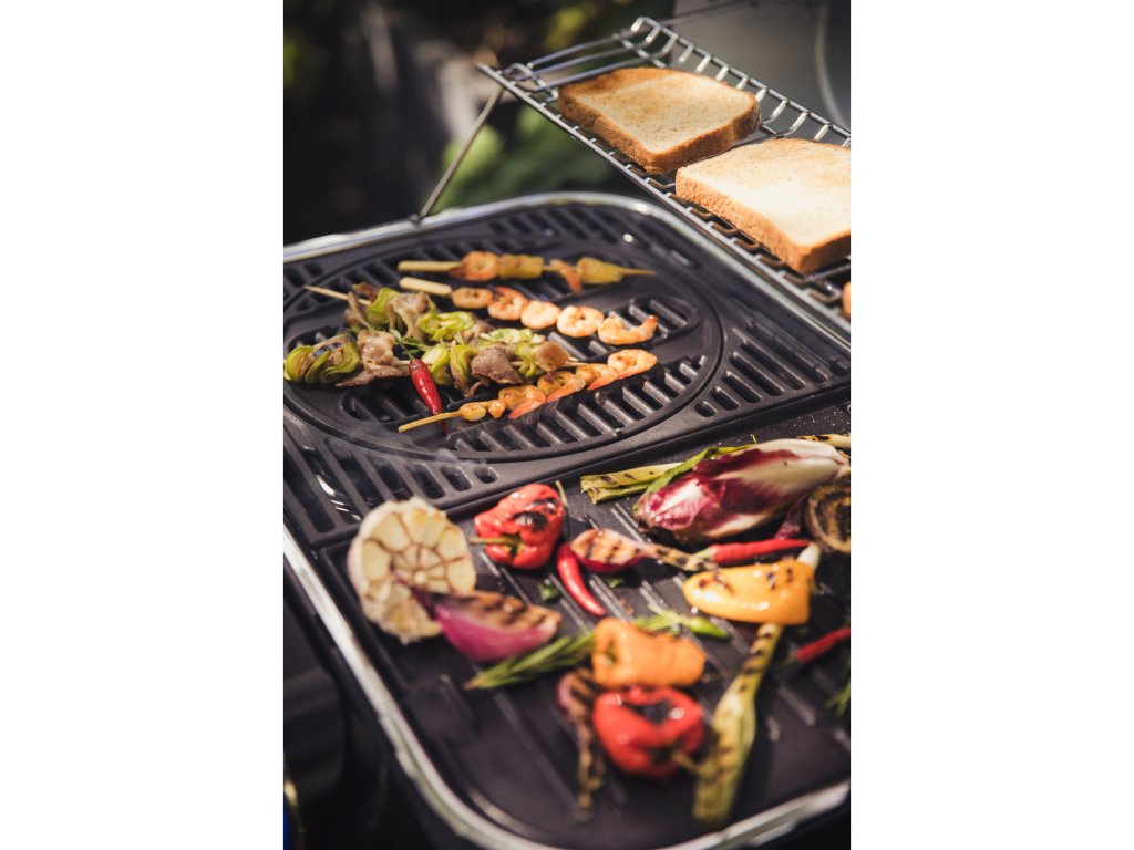 Campingaz® Attitude 2100 LX je elegantní stolní gril, který povýší městský styl grilování. Více možností využití díky integrovaným praktickým technologiím, kompaktní, přenosné balení. Jednoduchá manipulace a používání tohoto grilu si získá každého. Díky systému hořáků Campingaz® Blue Flame dosáhnete rovnoměrného rozložení teploty po celé ploše a ještě uspoříte plyn. Pod elegantním víkem naleznete litinový rošt Culinary Modular. Spolu s jeho příslušenstvím, které lze dokoupit, můžete ugrilovat nebo uvařit téměř cokoli. Tento rošt je vhodný pro použití kamene na pizzu, Paella pánve, litinové pánve s mřížkou. Až budete hotovi, InstaClean® zajistí, snadné čištění grilu, jednotlivé části grilovací vany lze vyjmout a dát do myčky, navíc má pohodlný výsuvný šuplíček na nečistoty, který lze jednoduše umýt nebo s ostatními částmi vložit do myčky na nádobí. Integrovaný Culinary Modular rošt a oboustranný tál. Teploměr ve víku. Hliníkový InstaClean® systém pro snadné čistění. InstaStart® zapalování. Pozor, použijte prověřenou připojovací sadu včetně regulátoru tlaku.