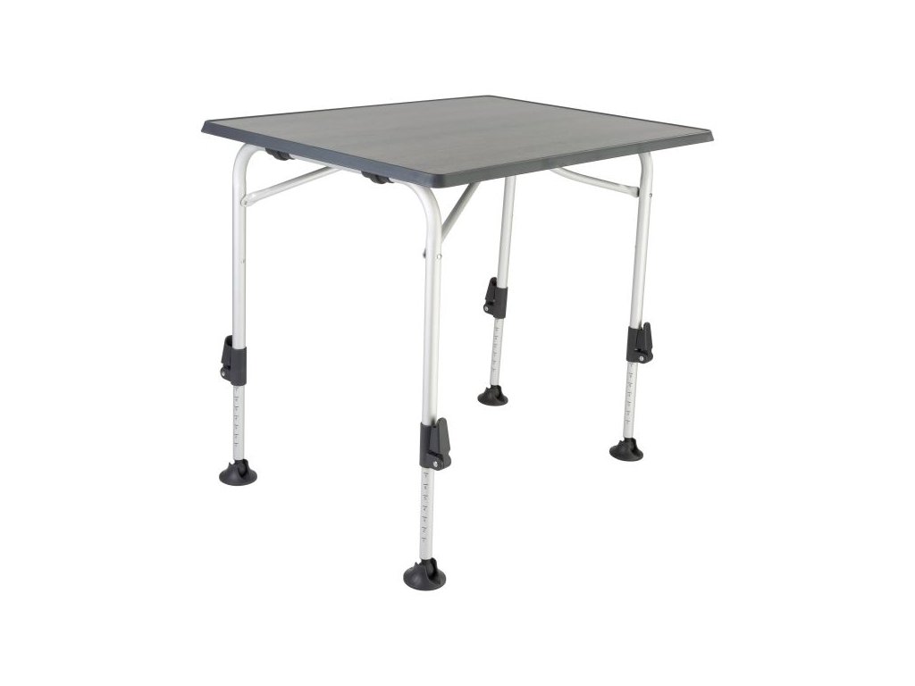 Stůl zaujme svým hliníkovým rámem, protože je lehký a vysoce stabilní. Velké patky s kuličkovými ložisky umožňují velmi dobrou stabilitu i na nerovném terénu. Všechny čtyři nohy stolu jsou výškově nastavitelné. Deska stolu je odolná vůči povětrnostním vlivům a teplu.