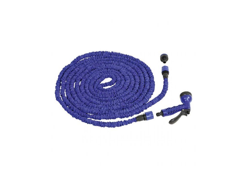 Pružná, flexibilní hadice. Během používání se roztáhne ze 7,5 m na 22,5 m. Po použití se opět smrští. Se 7násobnou multifunkční stříkací pistolí, dvěma rychloupínacími adaptéry a připojením na kohoutek (3/4 palce a 1 palec).Doplňkové parametry