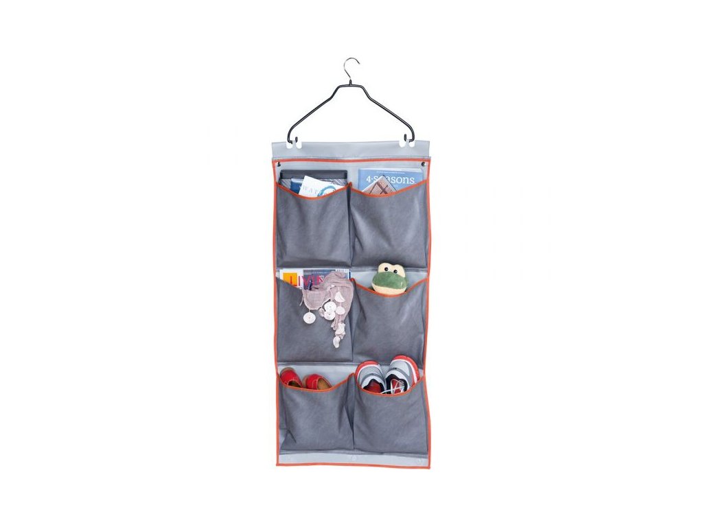 Flexibilní vak na boty, který lze připevnit pomocí textilní lemovky, druků nebo integrovaných poutek na stanové tyče nebo ramínka na šaty. Má 6 velkých kapes s velkými rozšiřujícími záhyby;