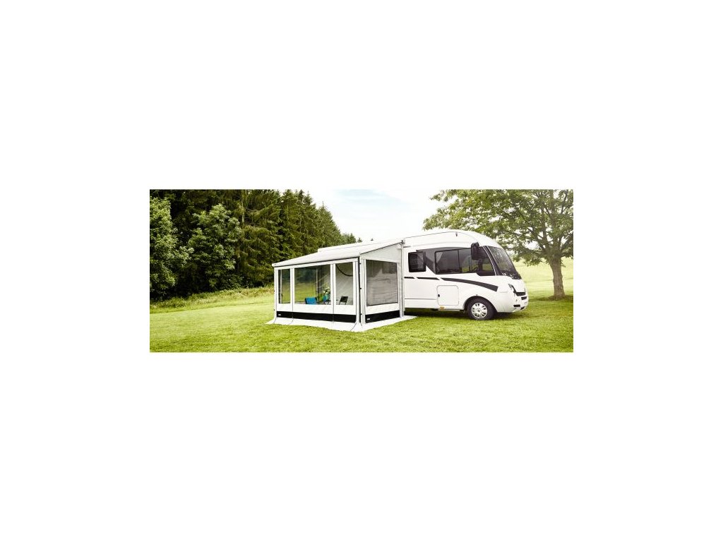 V závislosti na délce markýzy se design přední stěny mění bez kompromisů v oblasti jasu a pohodlí. Široké a užší přední díly jsou kombinované. Všechny přední části včetně velkých panoramatických oken lze zcela srolovat. Úzké přední části slouží jako vstupní dveře. Vhodné také pro Thule Omnistor 4900 / 5003.
