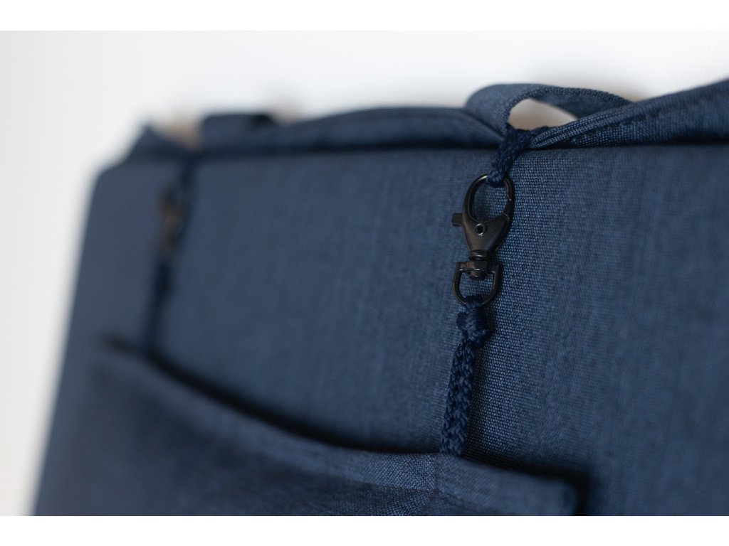 Podsedák je vyroben z kvalitního, odolného materiálu v tmavě modrém odstínu a jeho součástí je i odnímatelný polštářek s precizní výšivkou loga Concorde. Díky promyšlené konstrukci perfektně sedí na většinu kempovacích židlí a drží na místě pomocí praktických šňůrek.