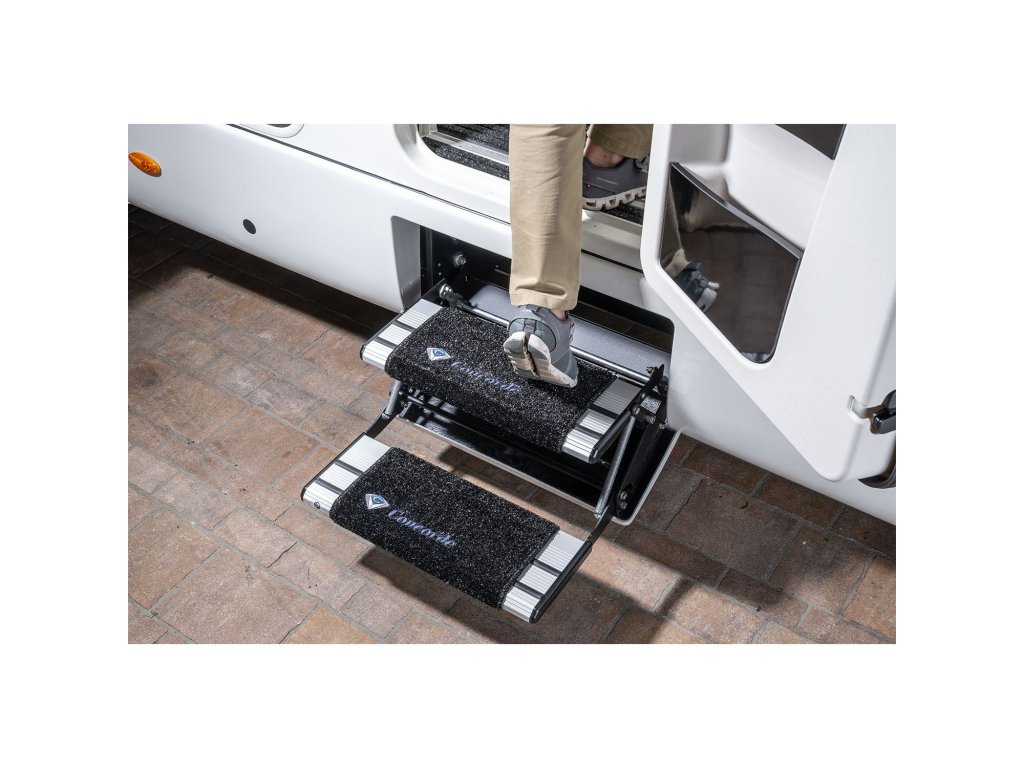 Podložka pod stupačky Concorde je praktická podložka, kterou lze umístit na elektronický i manuální schůdek. Při nastupování chrání před nečistotami a udržuje váš obytný vůz čistý. Lze ji připevnit pomocí přiložených pružin. Snadná instalace a praktické použití.