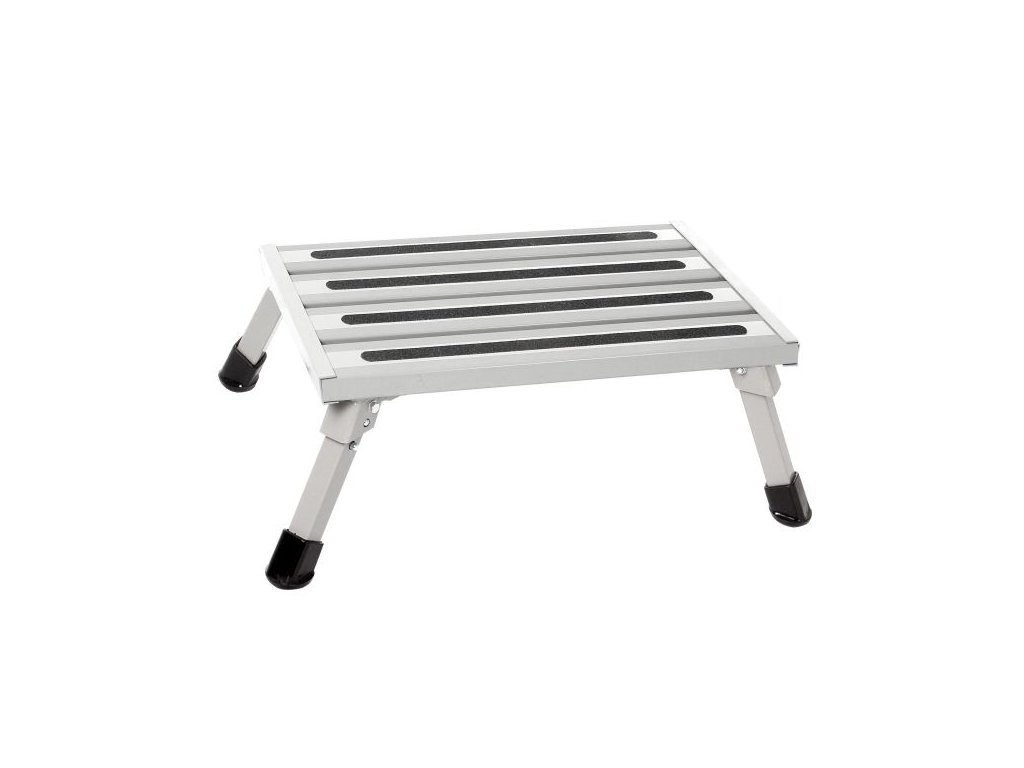 Super stabilní schůdek se skládacími nohami. Robustní konstrukce z hliníku s práškovým nástřikem. Vysoká stabilita. S velkým, protiskluzovým běhounem. Velmi kompaktní velikost.