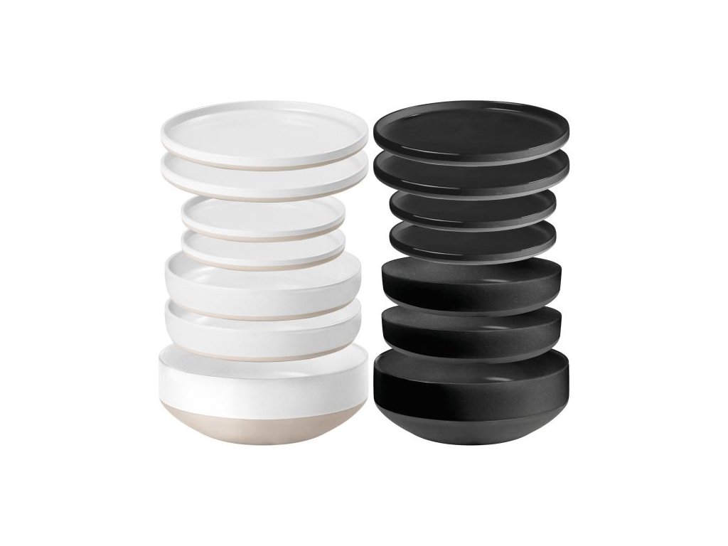 Sada je vyrobena z kvalitního, potravinářsky nezávadného melaminu na dotek kamene s porcelánovým efektem a je opatřena protiskluzovými kroužky. Jednotlivé díly jsou nárazuvzdorné, stohovatelné, vhodné do myčky a bez BPA. Talíře lze uložit do velké salátové mísy, aby se ušetřilo místo, díky čemuž je sada ideální pro dovolenou v kempu, cestování a venkovní pikniky. Výrobky s protiskluzem jsou na spodní straně opatřeny protiskluzovým těsněním. Zabrání se tak jejich uklouznutí, pádu nebo chrastění tam a zpět během jízdy.