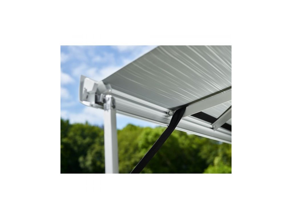 Napínací pás je umístěn přes kloubová ramena a bočně podepřen; pasuje na všechny markýzy.