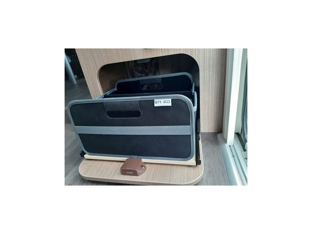 Přístup k úložnému prostoru pod boční lavicí už nemůže být snazší! Díky praktickému zásuvkovému systému je otravné zvedání polštářů minulostí. Jednoduše otevřete chlopeň a vytáhněte skládací látkovou krabici (y). Protože jsou pouze zajištěny suchým zipem, lze je snadno vyjmout a naplnit (například v domě). Jako bonus lze krabici libovolně rozdělit.