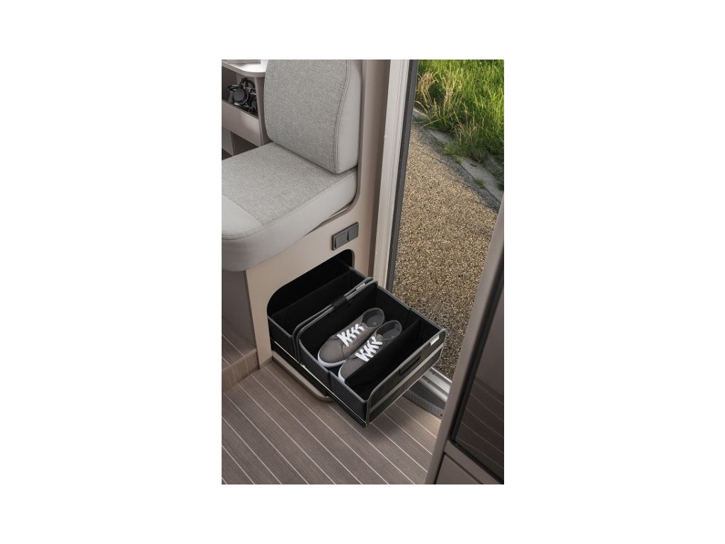Přístup k úložnému prostoru pod boční lavicí už nemůže být snazší! Díky praktickému zásuvkovému systému je otravné zvedání polštářů minulostí. Jednoduše otevřete chlopeň a vytáhněte skládací látkovou krabici (y). Protože jsou pouze zajištěny suchým zipem, lze je snadno vyjmout a naplnit (například v domě). Jako bonus lze krabici libovolně rozdělit.